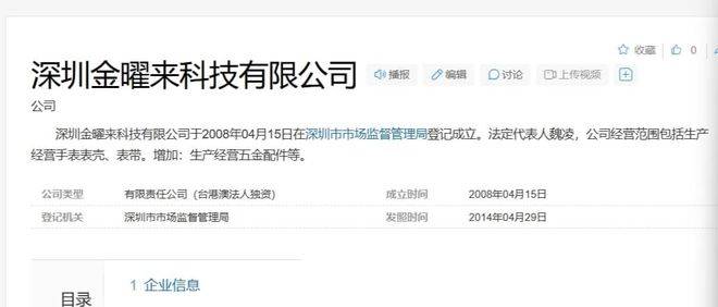 该公司成立于2008年4月15日,是一家有限责任公司,也属于台港澳法人独资公司。该公司经营范围是生产经营手表表壳、表带和其他的五金配件。