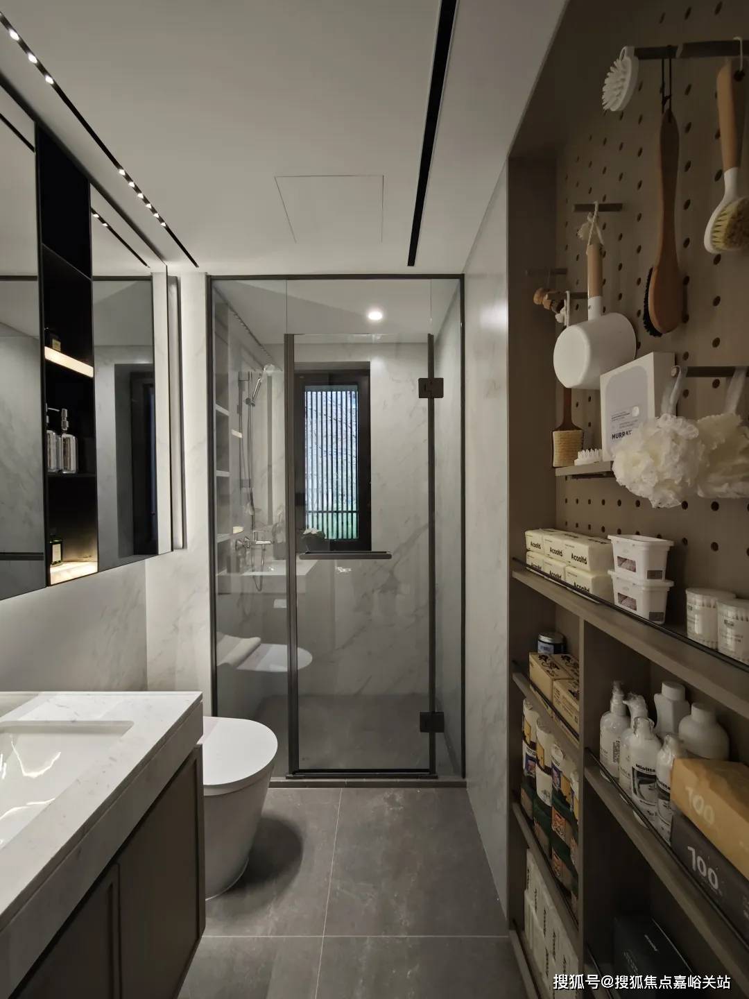 另外,在卫生间部分,项目在台盆对面做了一个墙体的向后延伸,再次做出一个超大尺寸的洞洞墙板和储物柜,原本只有镜柜的收纳空间瞬间就扩大了不止一倍。✅✅ 中環置地中心望云售楼处电话:✅✅